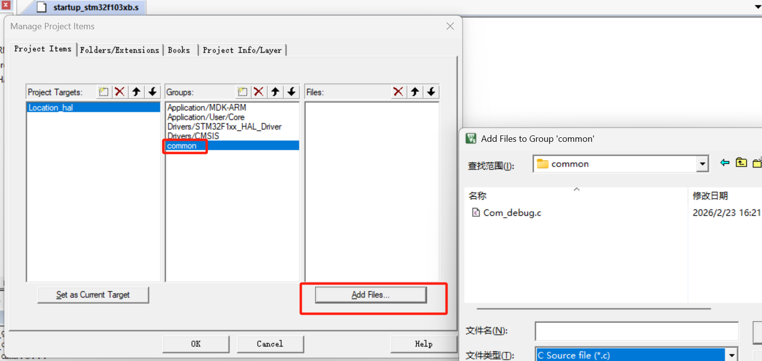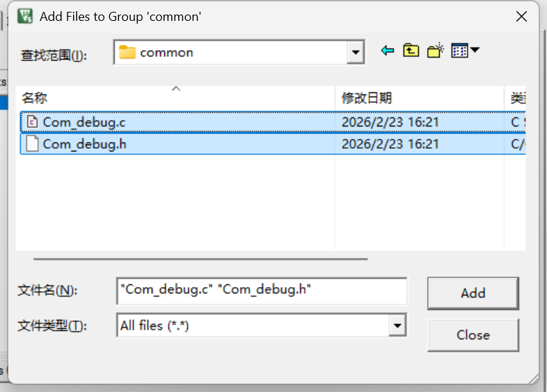 将common文件夹放进来,会把文件夹中的h头文件加入