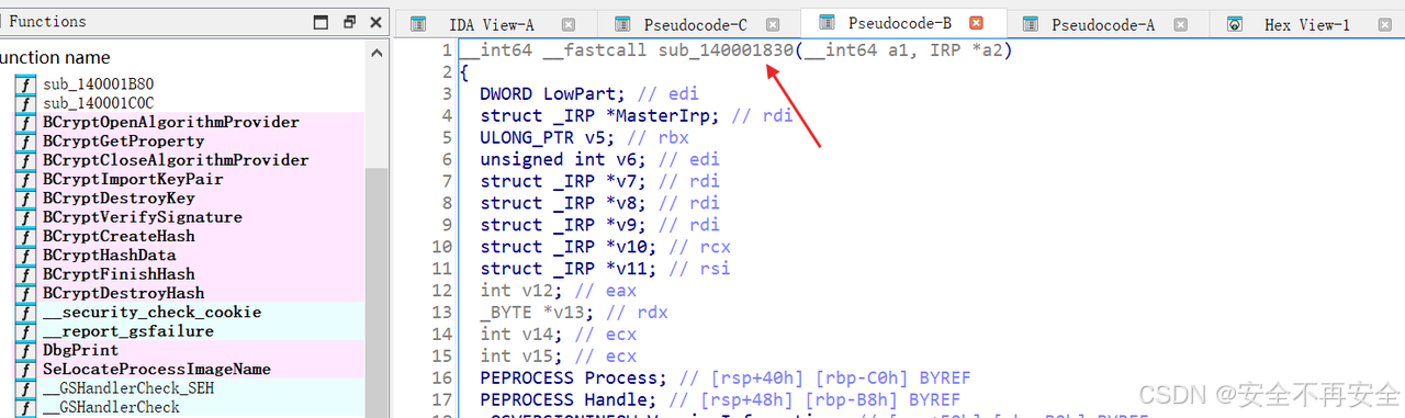 接着交叉引用可以看到 sub_140001830 调用了 sub_140001B80 函数