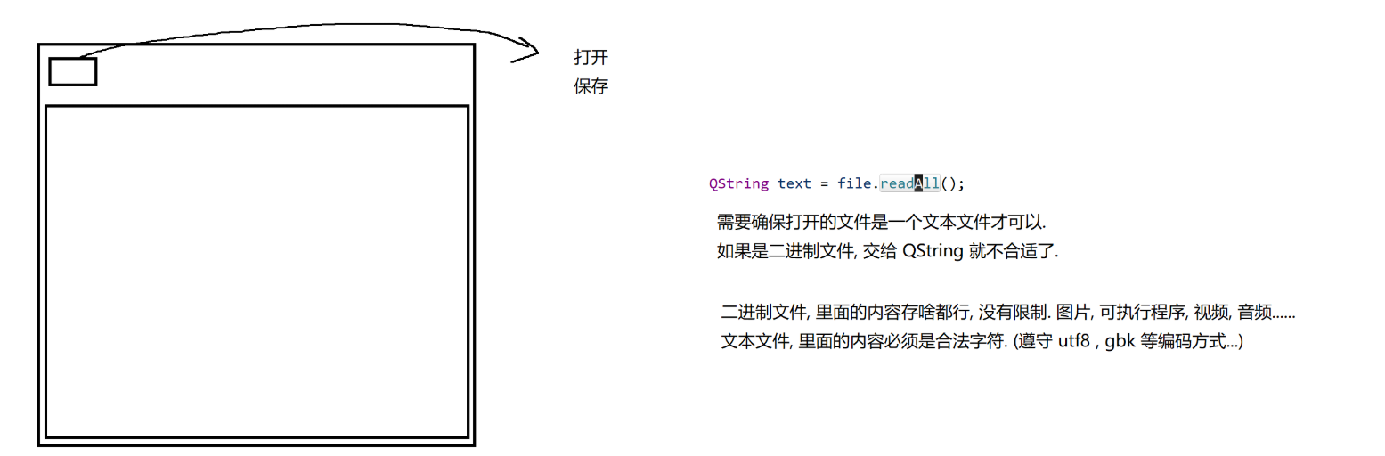 在我们之前学习Linux,C/C++的时候都学习过文件相关的知识,我们Qt也提供了一套文件操作,但是Qt中使用上述的几种方案来读写文件,也是完全可以的。像Linux的一套API,局限于Linux系统,Windows上的Qt就需要Windows的API。之所以我们Qt要再封装一套API,是因为Qt诞生的太早了,C++还没有"标准化"的概念。咱们在编写Qt程序的时候,更推荐使用Qt自己提供的这一套文件操作,也方便和QString等内置的类很好的配合。