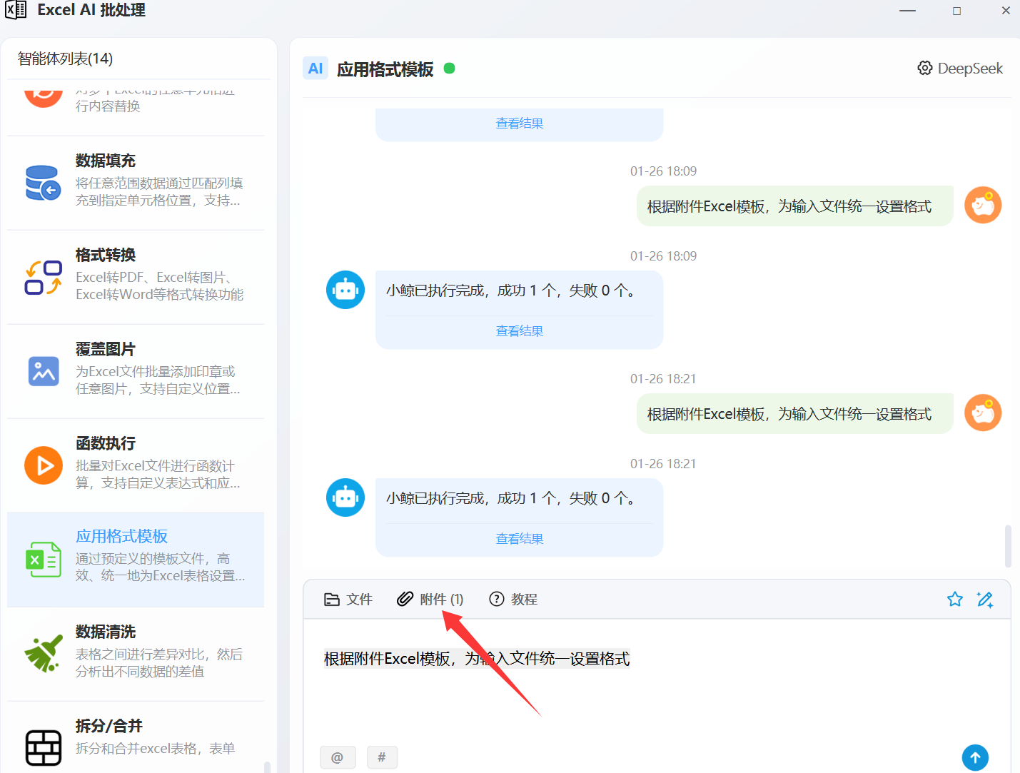 然后在软件界面点击附件,选中到这个模板: