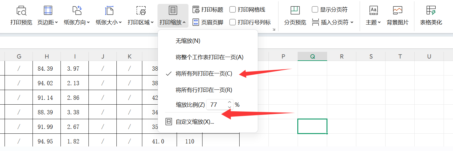 2. 将所有列打印在一页