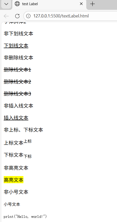 <mark>:高亮文本(背景黄色)。