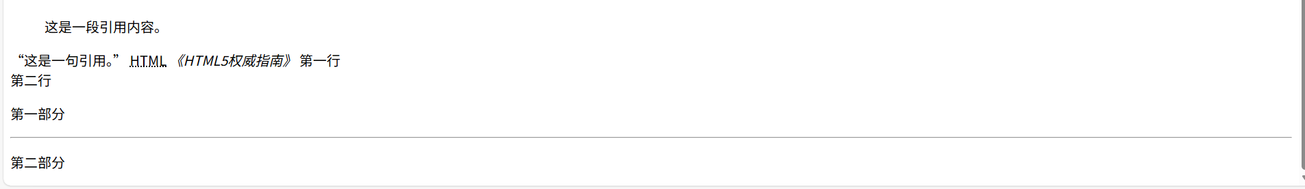 <blockquote>这是一段引用内容。</blockquote>