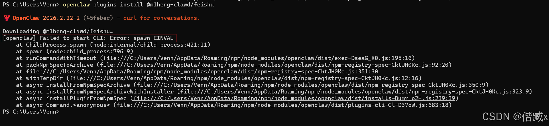 一定会遇到 openclaw安装飞书插件时一定会遇到的报错 spawn: