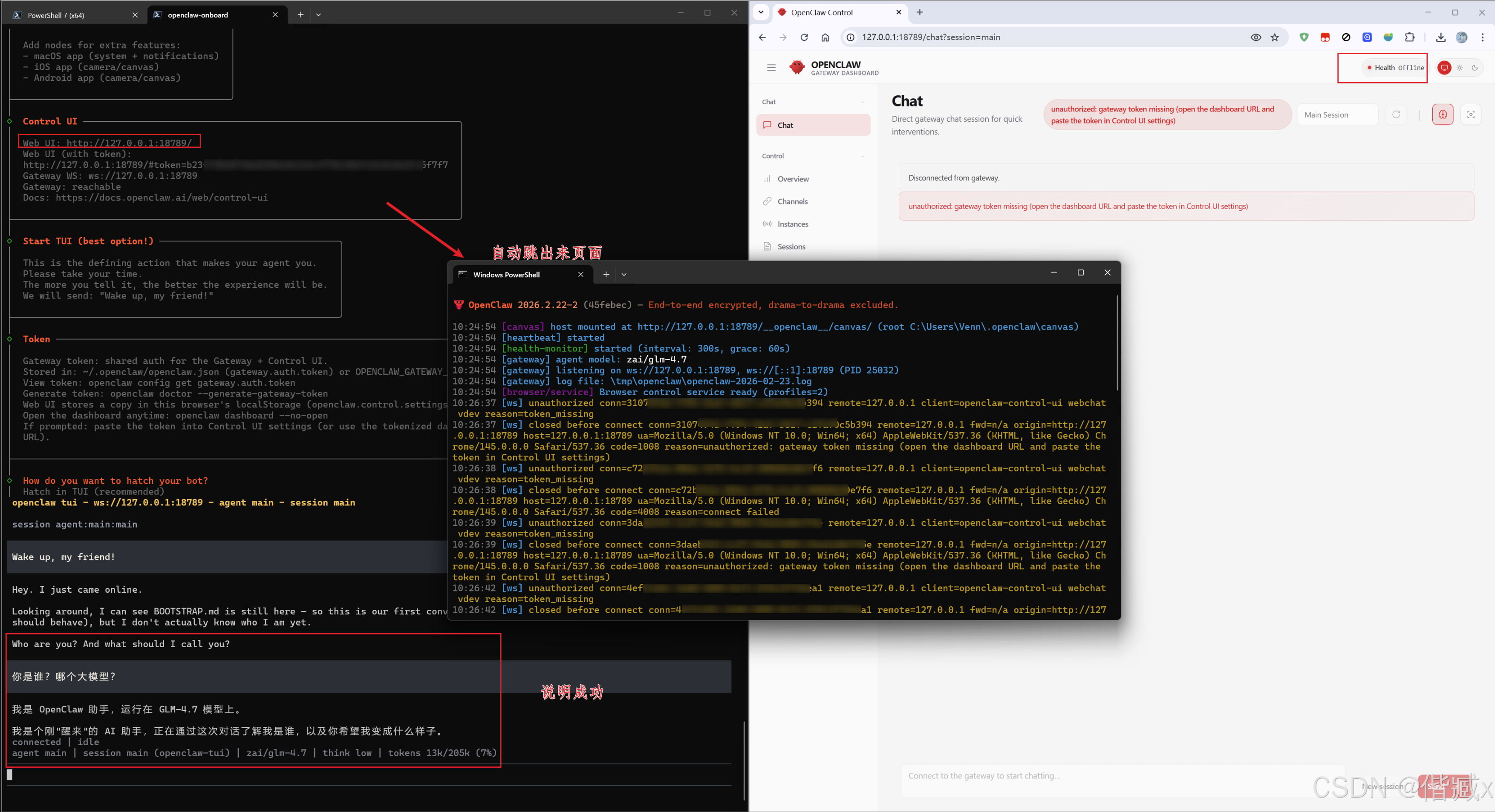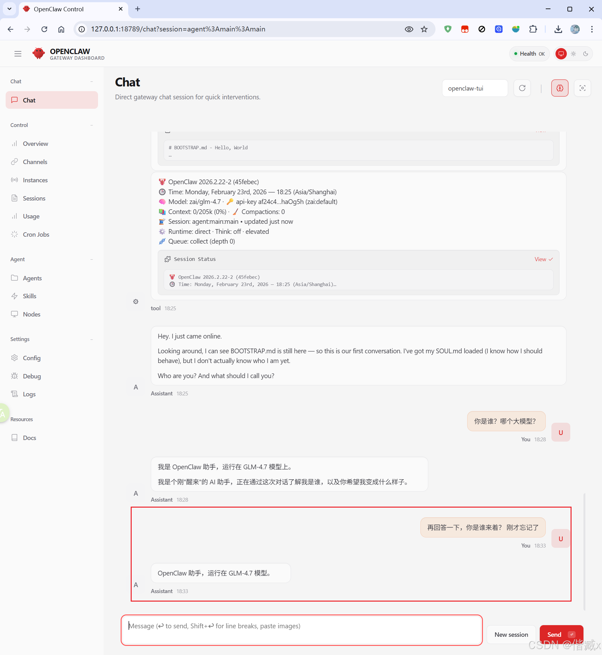 这里会自动打开浏览器,网址为 http://127.0.0.1:18789/#token=48cc2621xxxxxxxxxxxxx5942aebfe31cbf5