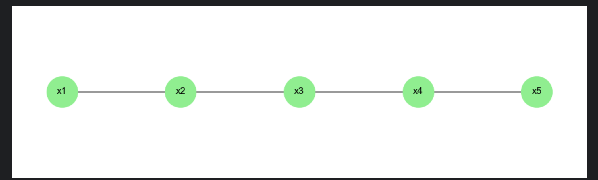 edges = [('x1','x2'), ('x2','x3'), ('x3','x4'), ('x4','x5')]