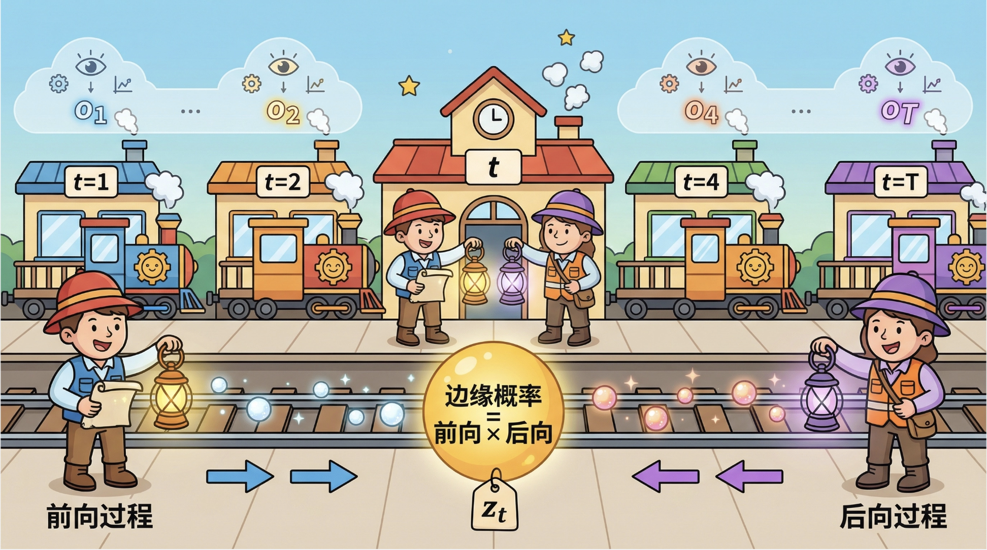 有向链式模型就像一串 "因果链",每个节点只依赖于前一个节点。比如我们每天的心情:今天的心情(节点 t)只和昨天的心情(节点 t-1)有关,和前天的心情没有直接关系。