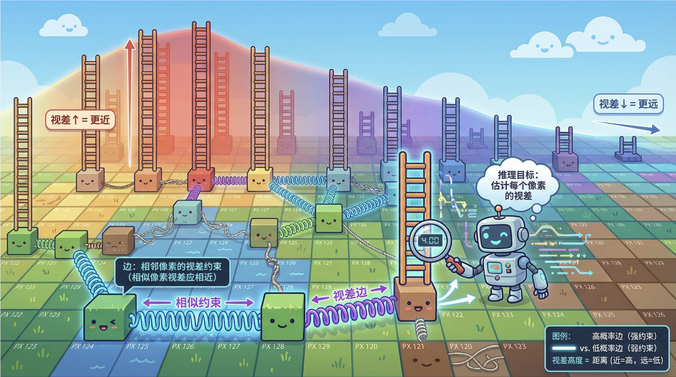 - 边:相邻像素的视差约束(相似像素的视差应相近);