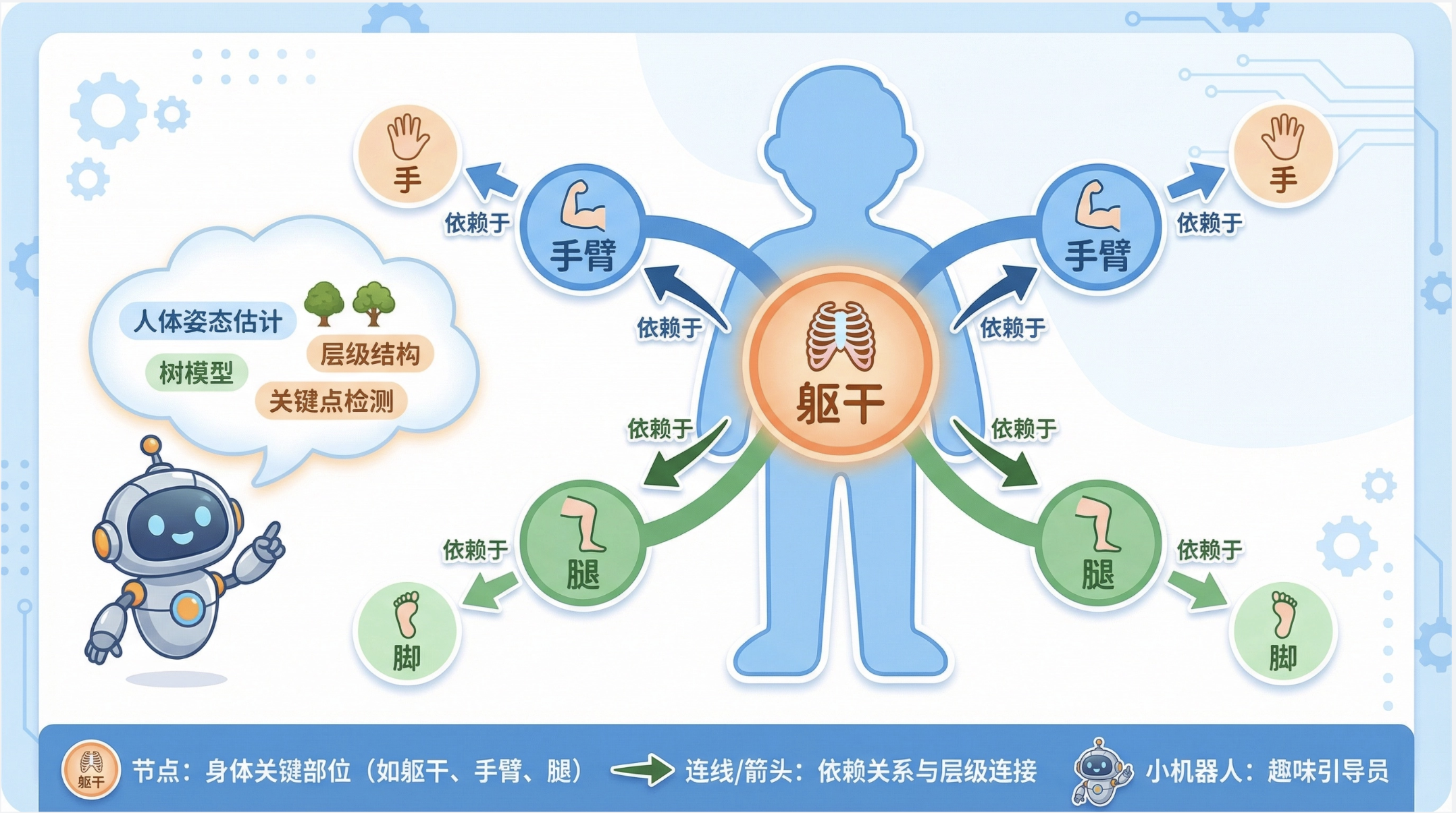 - 根节点:人体躯干;