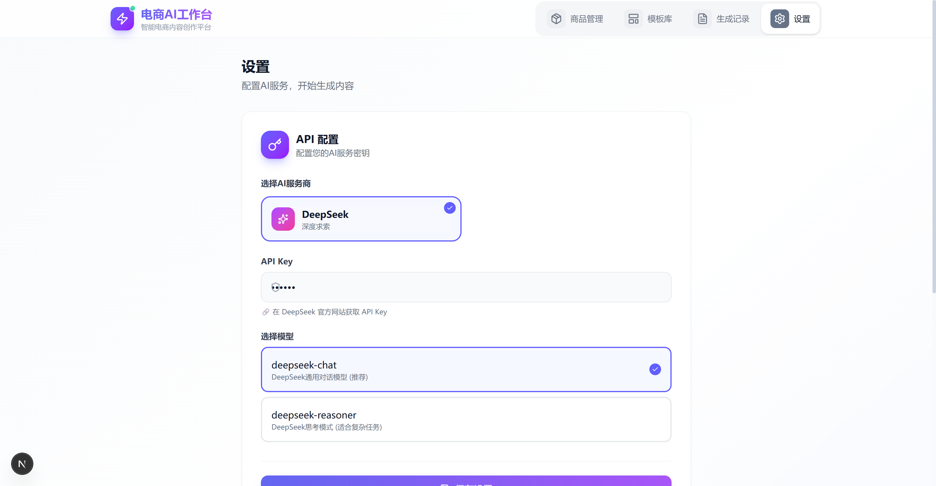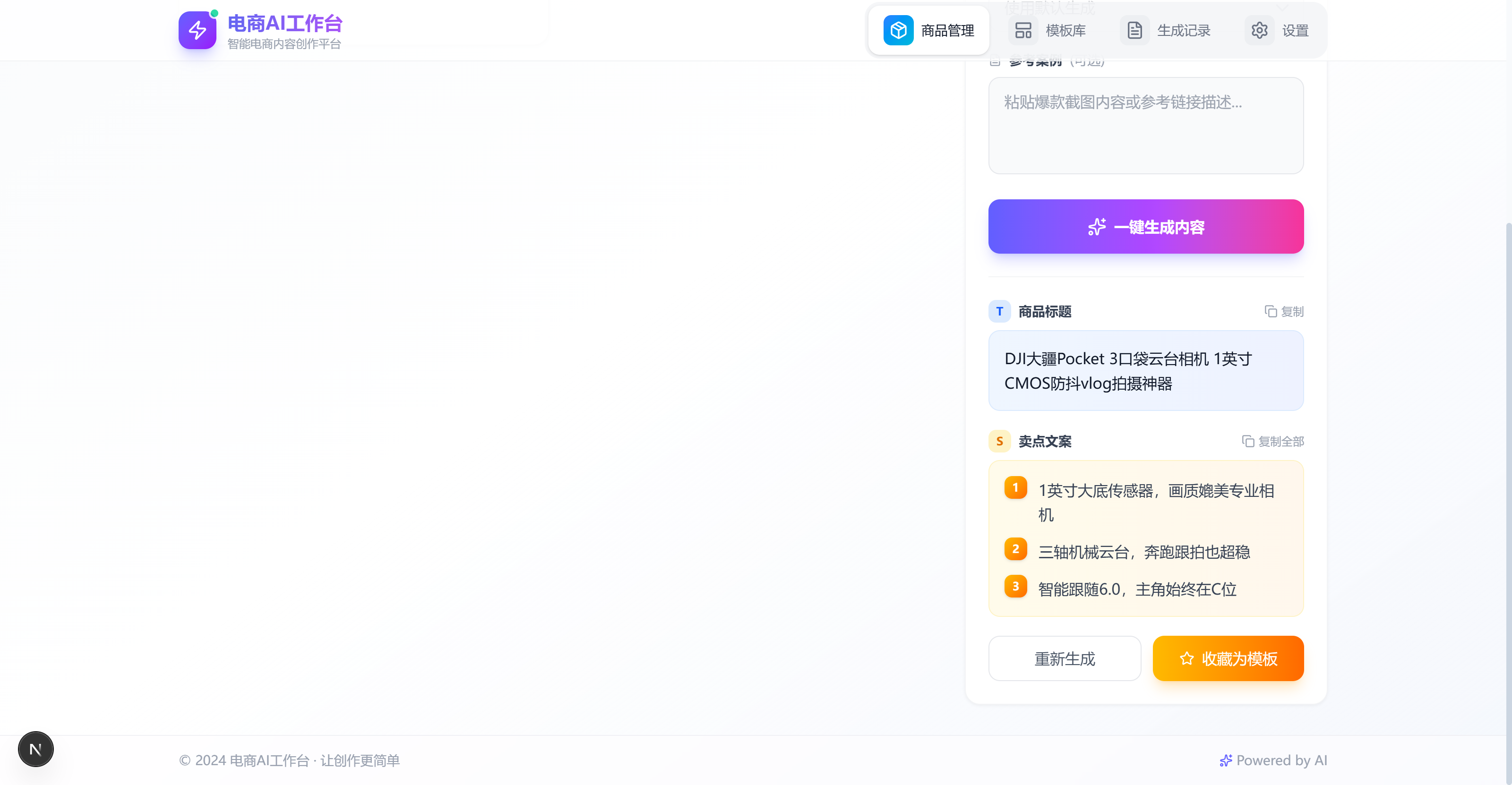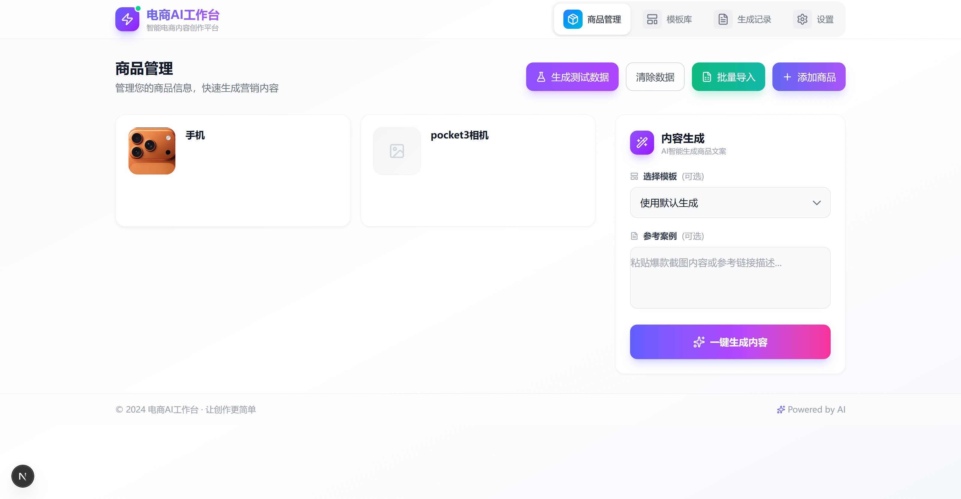 参考这个调用方法,帮我支持文案生成功能,可以基于商品信息点击后生成对应抖音电商文案,多种风格。