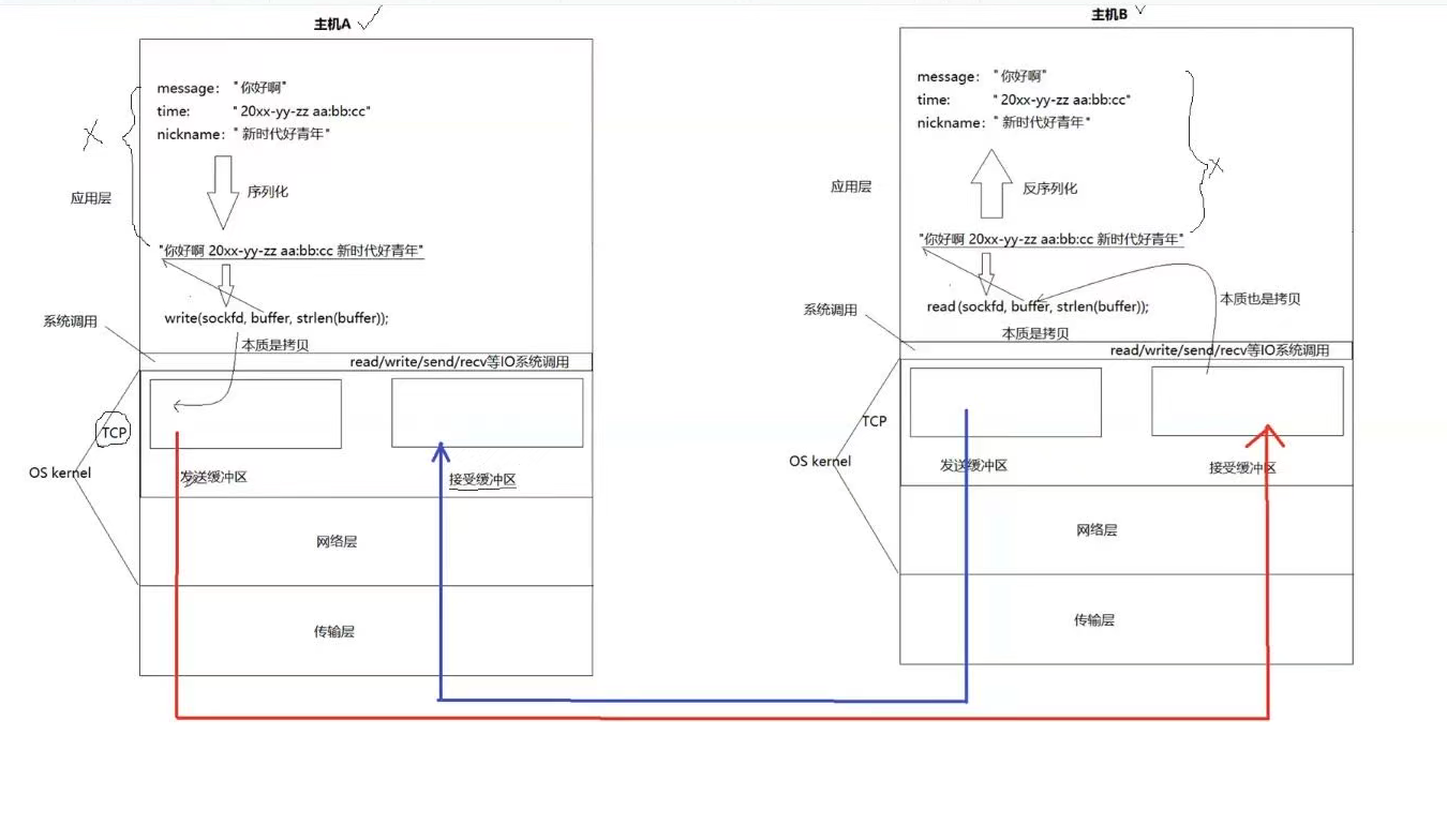 - 缓冲区发送和收取的时候根本就不在乎数据到底是不是在一起的所以我们需要序列化