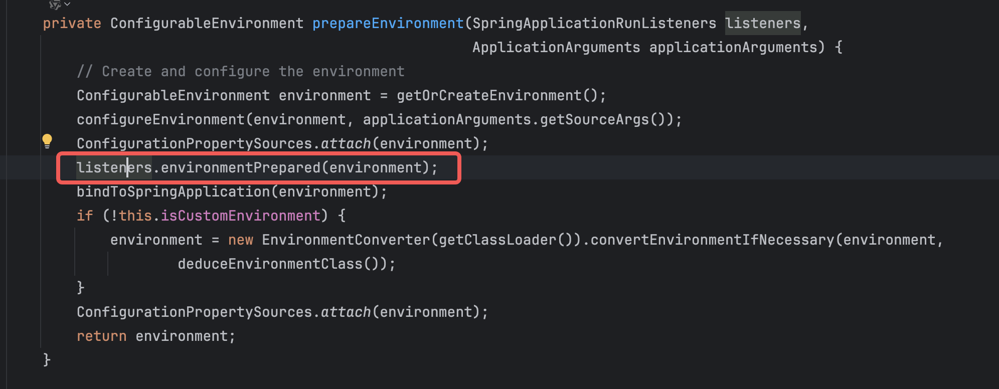 ConfigurableEnvironment environment = prepareEnvironment(listeners, applicationArguments);