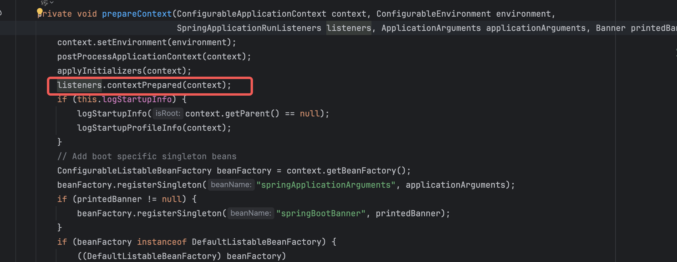 prepareContext(context, environment, listeners, applicationArguments, printedBanner);