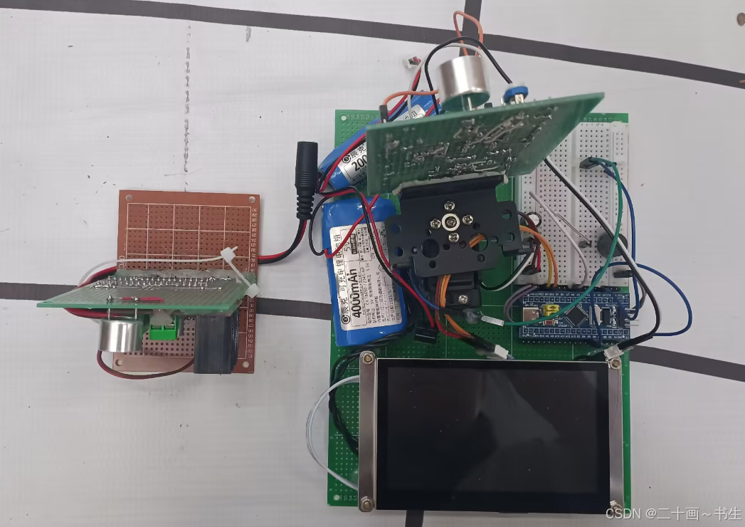 1\] 李慧平.丁万龙.赵建丽等. 《高等数学》 北京:北京师范大学出版社,2022. \[2\]阎石.王红.《数字电子技术基础》(第六版).北京:高等教育出版社,2022. \[3\]Mark A.Richards.《雷达信号处理基础》.(第一版) 电子工业出版社,2008. \[4\] 冯成龙.《传感器与检测电路设计项目化教程》.(第二版)机械工业出版社,2021. \[5\] 张毅刚. 《单片机原理与应用设计》(第三版)\[M\].电子工业出版社,2020. ## ****7.附录**** ### ****附录一 原理图****   ### ****附录**** ****二 部分源代码**** #pragma once #include "stm32f1xx_hal.h" /\*\* \* 初始化 DWT 计数器,需要在初始化阶段调用一次 \*/ void DWT_Init(void); /\*\* \* 更新 DWT 计数器溢出计数器,在 CPU 频率 72MHz 的情况下,必须至少每 30s 调用一次 \*/ void DWT_Update_Overflow_Counter(void); /\*\* \* 获取 DWT 计数器当前值 \*/ uint64_t DWT_Get_Tick(void); /\*\* \* 将 DWT 计数器值转换为微秒 \*/ uint64_t DWT_TicksToUs(uint64_t ticks); /\*\* \* 获取当前时间,单位为微秒 \*/ uint64_t DWT_Get_Us(void); /\*\* \* 获取当前时间,单位为毫秒 \*/ uint64_t DWT_Get_Ms(void****);**** #include "dwt_delay.h" static uint32_t dwt_overflow_counter = 0; static uint32_t dwt_last_cyccnt = 0; void DWT_Init(void) { CoreDebug-\>DEMCR \|= CoreDebug_DEMCR_TRCENA_Msk; DWT-\>CYCCNT = 0; DWT-\>CTRL \|= DWT_CTRL_CYCCNTENA_Msk; dwt_overflow_counter = 0; dwt_last_cyccnt = 0; } void DWT_Update_Overflow_Counter(void) { uint32_t current_cyccnt = DWT-\>CYCCNT; if (current_cyccnt \< dwt_last_cyccnt) { dwt_overflow_counter++; } dwt_last_cyccnt = current_cyccnt; } uint64_t DWT_Get_Tick(void) { return ((uint64_t)dwt_overflow_counter \<\< 32) \| DWT-\>CYCCNT; } uint64_t DWT_TicksToUs(uint64_t ticks) { uint32_t hclk_freq = HAL_RCC_GetHCLKFreq(); return ticks \* 1000000 / hclk_freq; } uint64_t DWT_Get_Us(void) { return DWT_TicksToUs(DWT_Get_Tick()); } uint64_t DWT_Get_Ms(void) { return DWT_Get_Us() / 1000; } ## 8.实物展示