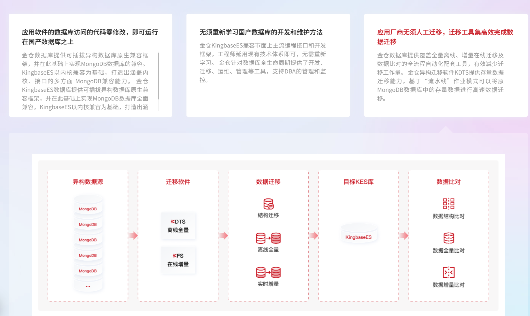 金仓数据库成功完成某大型互联网企业超过200TB文档型数据的迁移任务,标志着其在"文档型数据库MongoDB迁移替换"领域实现重要进展。