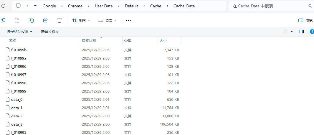 Chrome 将缓存文件存储在以下路径(Windows 示例,新版本 Chrome 可能使用