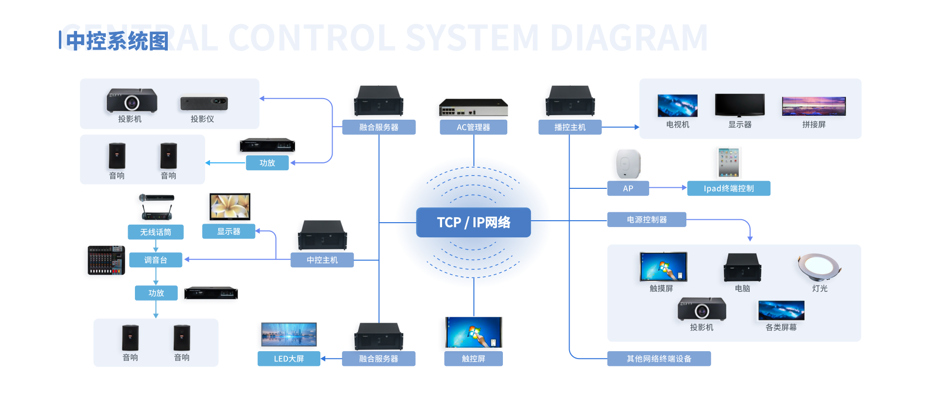 多功能会议厅是集会议、培训、发布会、演出等多场景于一体的核心空间,其可编程网络中央控制系统主机是整个智能空间的"神经中枢",需具备强大的集成管控能力、极致的场景适配性、稳定的网络通信性能、灵活的可编程扩展性与可靠的安全冗余设计,才能满足复杂多变的使用需求,实现全设备、全流程的智能化统一管理。以下从核心性能、接口协议、场景功能、扩展兼容、安全稳定五大维度,详解多功能会议厅所需的中控主机标准。