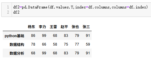 df2=pd.DataFrame(df.values.T,index=df.columns,columns=df.index)