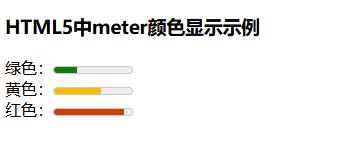红色:<meter min="0" max="10" low="3" high="8" optimum="2" value="9"></meter>