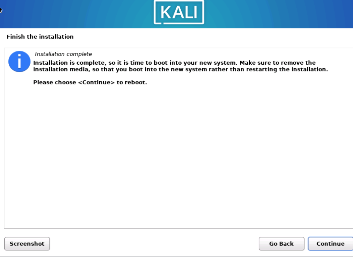 25. 安装完成-选择continue,自动重启后就大功告成了。