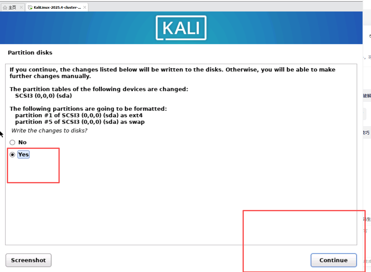 18. 磁盘分区-是否将更改写入磁盘,选择yes再点continue
