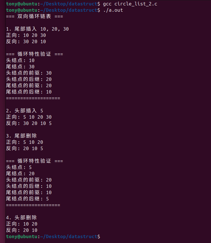 printf("=== 双向循环链表 ===\n\n");