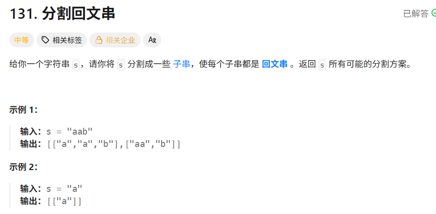 # tmp 列表,记录了从字符串开头到当前位置,已经切出来的所有回文子串。