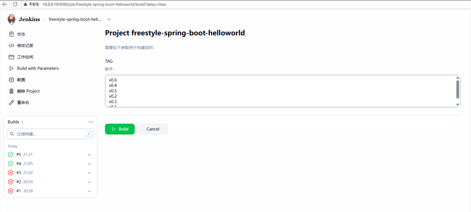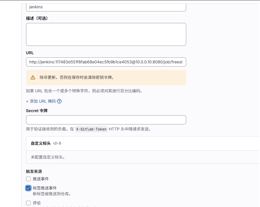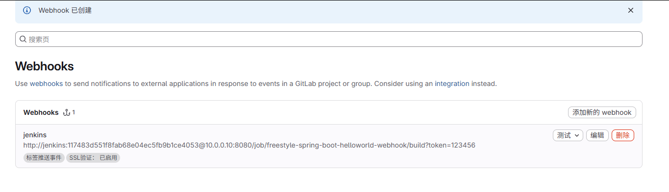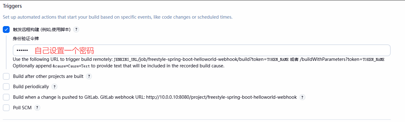 完善这个内容:http://10.0.0.10:8080/job/freestyle-spring-boot-helloworld-webhook/build?token=123456