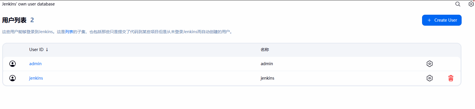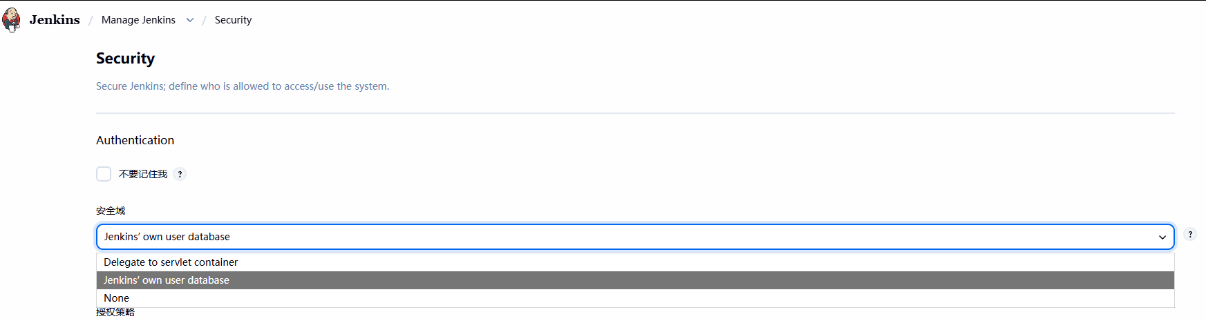 修改安全配置为Jenkins's own user database(Jenkins专有用户数据库)