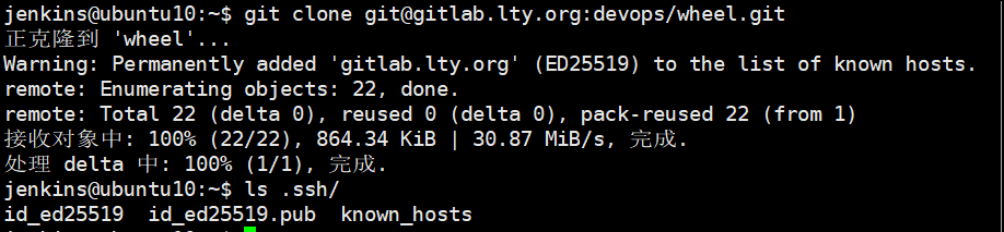 bashgit clone git@gitlab.lty.org:devops/wheel.git2.打通 jenkins 主机和 gitlab 主机的 key 验证