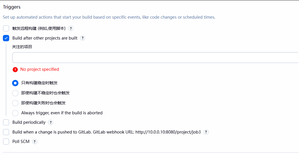 构建触发器(webhook),也称为钩子,实际上是一个HTTP回调,其用于在开发人员向gitlab提交代码后能够触发jenkins自动执行代码构建操作。