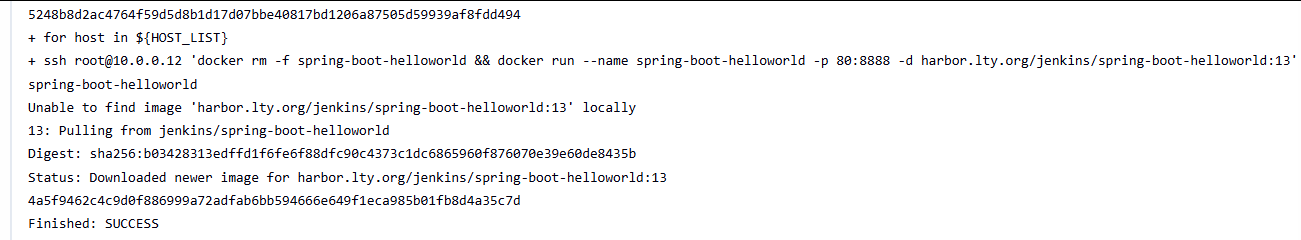 ssh root@$host "docker rm -f ${APP} && docker run --name ${APP} -p ${PORT}:8888 -d ${HARBOR}/${PROJECT}/${APP}:${TAG}"