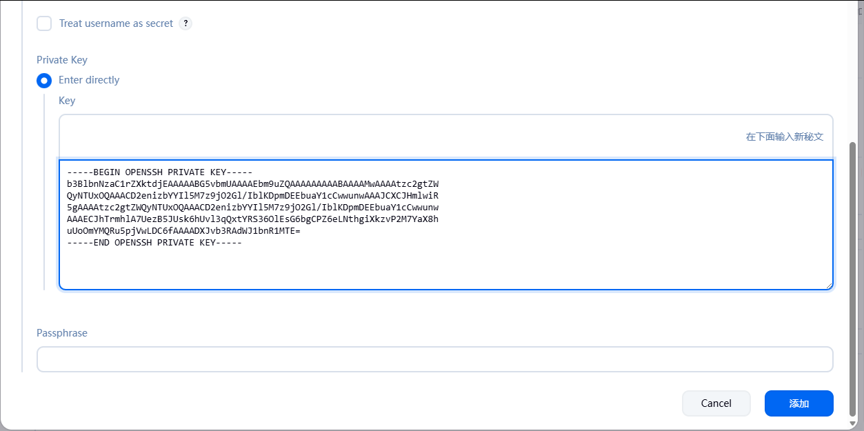 注意jenkins使用的是jenkins用户执行相关命令,所以我们需要再jenkins用户下获取密钥对