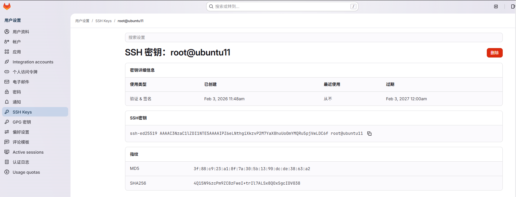 (2)在 Gitlab服务器上用户中关联 Jenkins 生成的ssh 公钥key