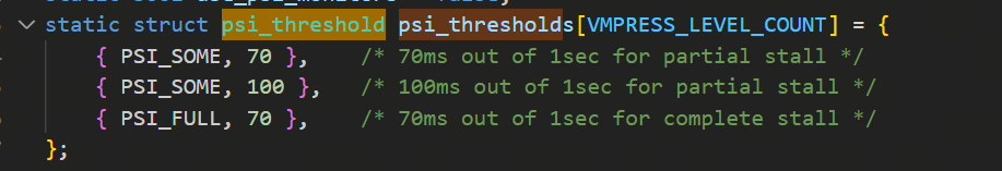 3.1.1 代码里定义的三级psi内存水位阈值及对应的oom_adj数值