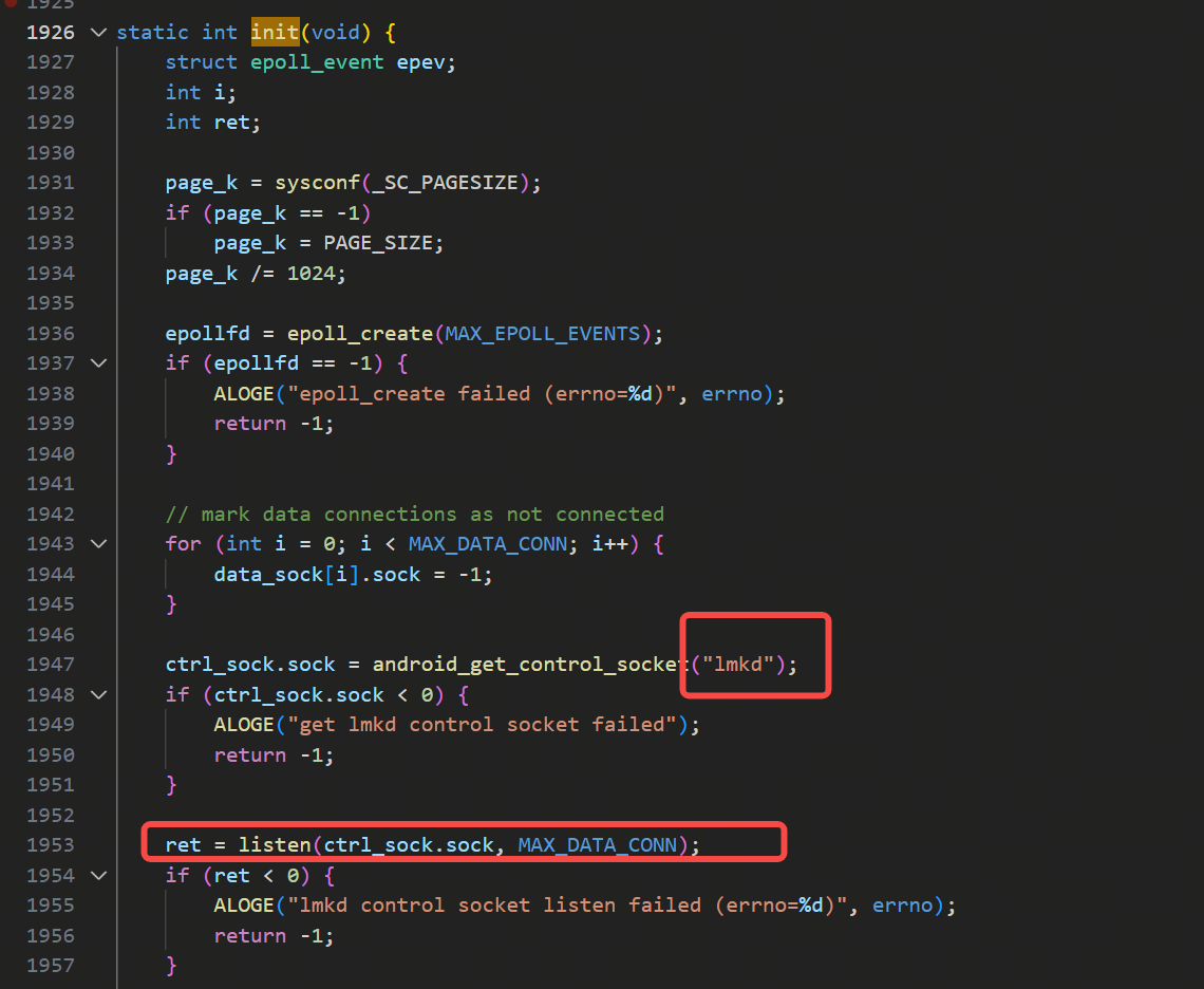 init函数里创建lmkd的socket,并进行listen: