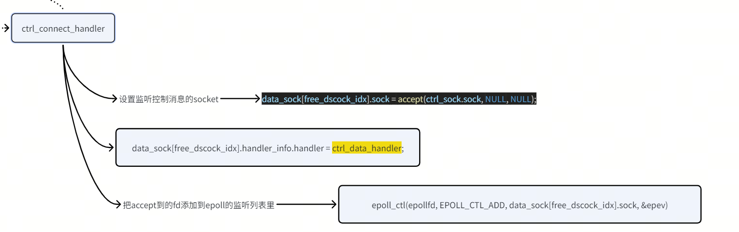 accept这个连接请求,拿到fd,把该fd加入到epoll里去(设置处理控制消息的回调函数ctrl_data_handler)