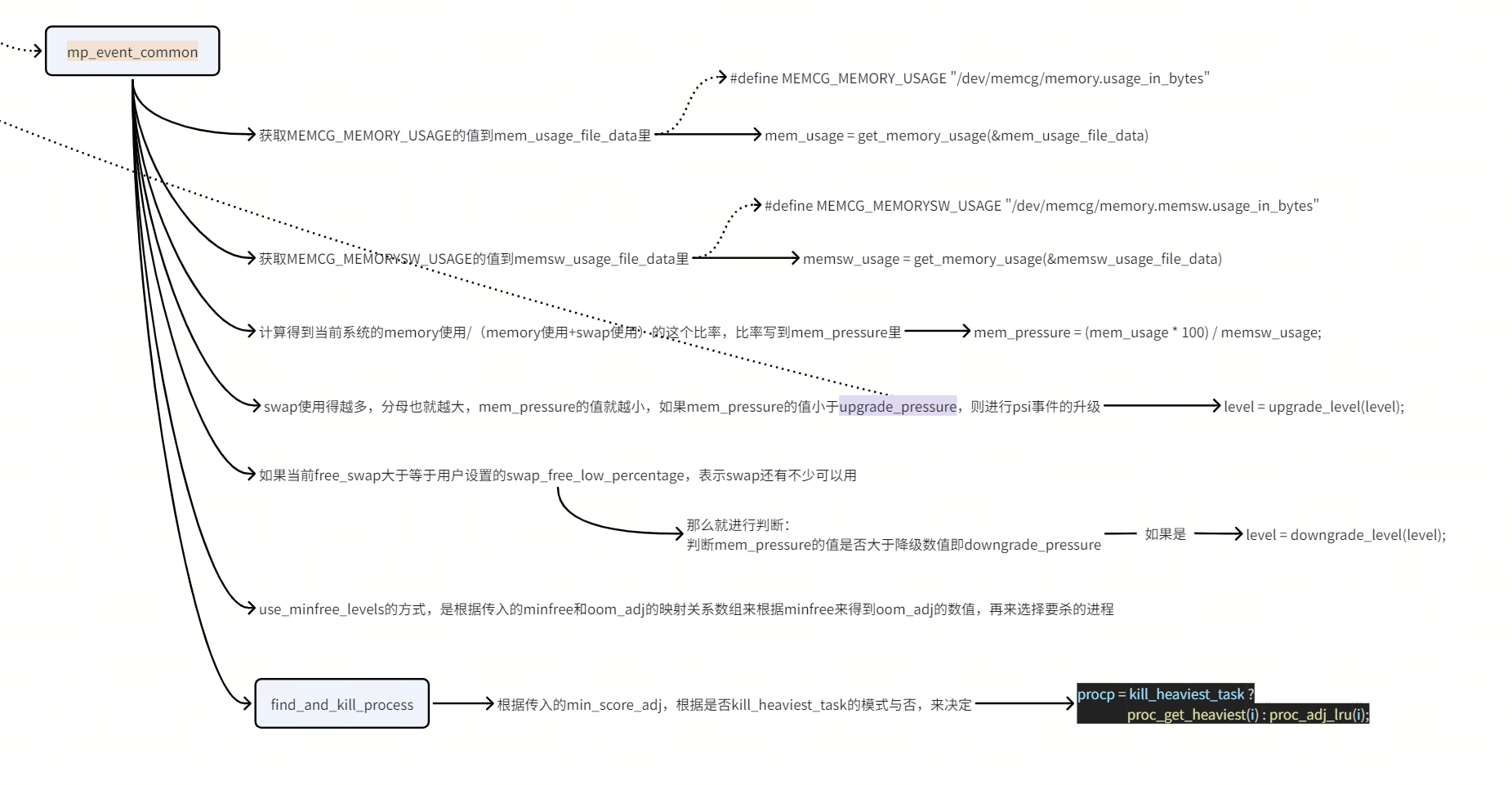 3)最后,介绍一下mp_event_common里的逻辑,这部分逻辑就是响应达到psi水位事件的逻辑,如下图的逻辑整理: