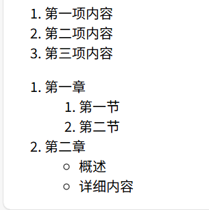 默认样式:浏览器通常会在每个列表项前显示一个项目符号(如圆点、方块等)
