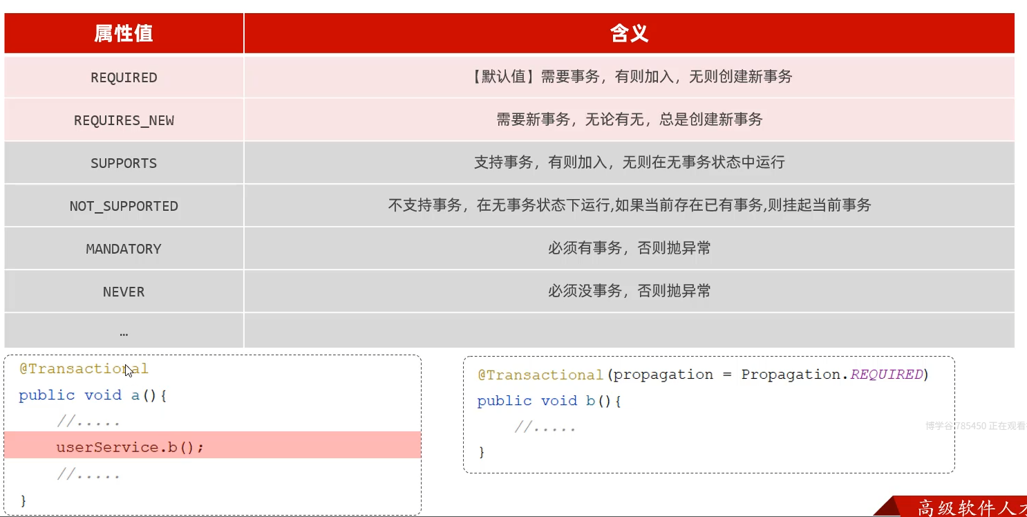 事务属性-传播行为:指的就是当一个事务方法被另一个事务方法调用时,这个事务方法员工如何进行事务控制