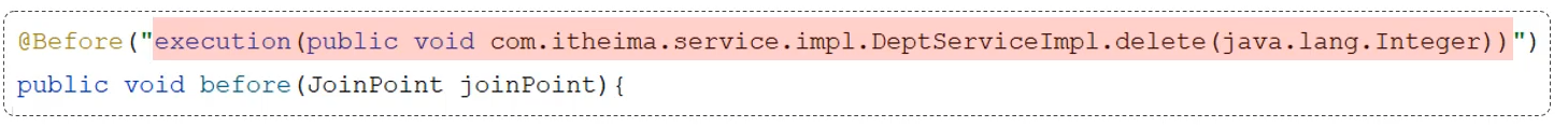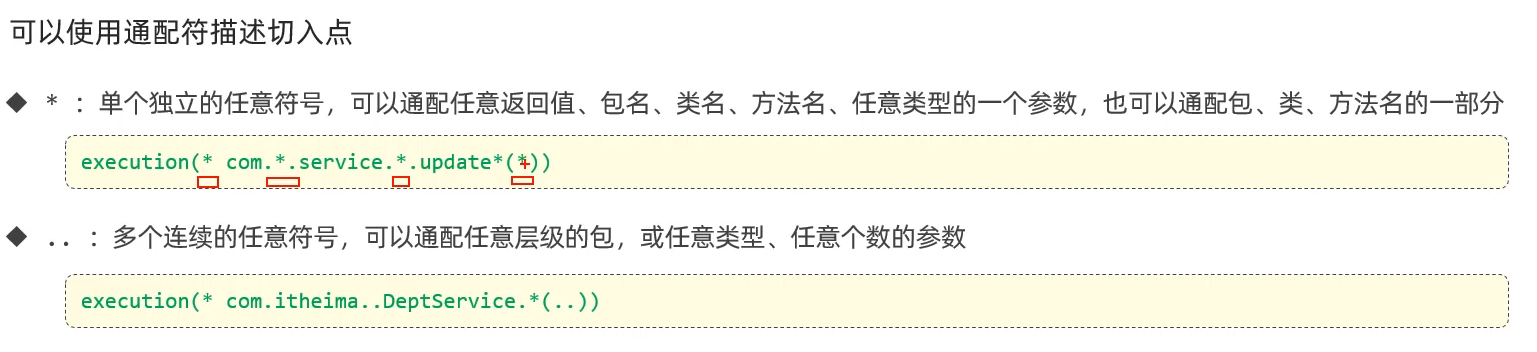 execution:主要根据方法的返回值、包名、类名、方法名、方法参数等信息来匹配。语法为: