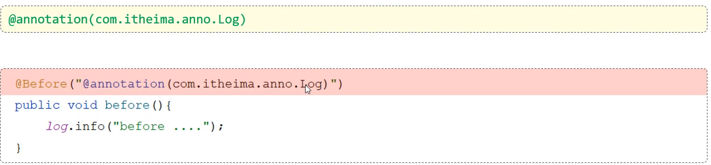 2.@Before:前置通知,此注解标注的通知方法在目标方法前被执行
