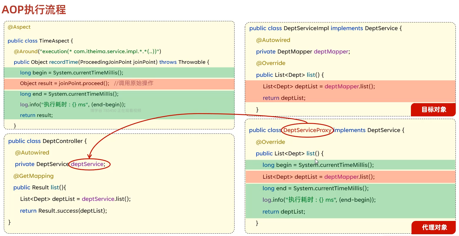 场景:案例部分功能运行较慢,定位执行耗时较长的业务方法,此时需要统计每一个业务方法的执行耗时