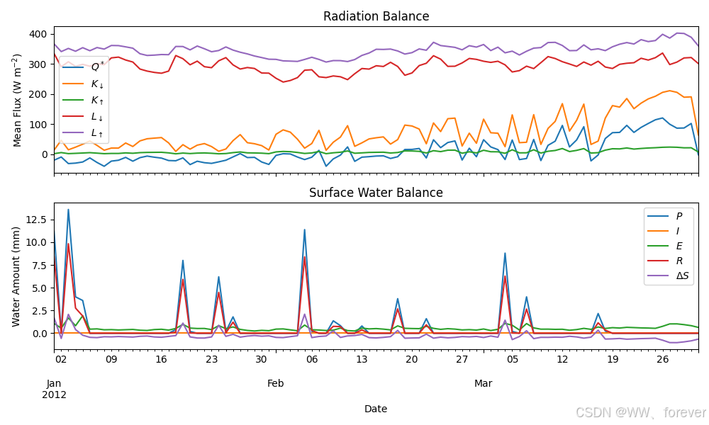 - 辐射平衡:Kdown, Kup, Ldown, Lup