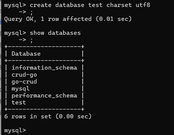 ### 创建数据库 create database 数据库名称;编码格式 charset utf8;