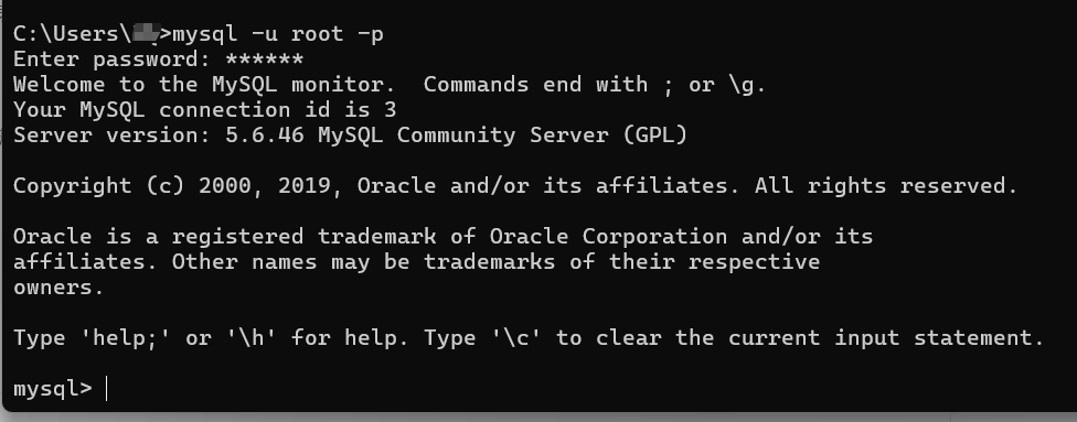 // 然后就是显示要数据密码,数据密码之后,就可以直接进入 mysql 命令行界面