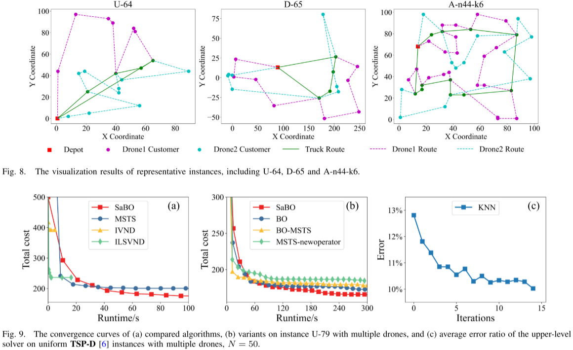 但是,传统的双层优化方法面临一个致命问题:上层每生成一条卡车路线,下层都要进行一次耗时的无人机路线计算,这在计算上是极度低效的。为此,研究中引入了机器学习技术,提出了代理辅助双层优化方法(SaBO)