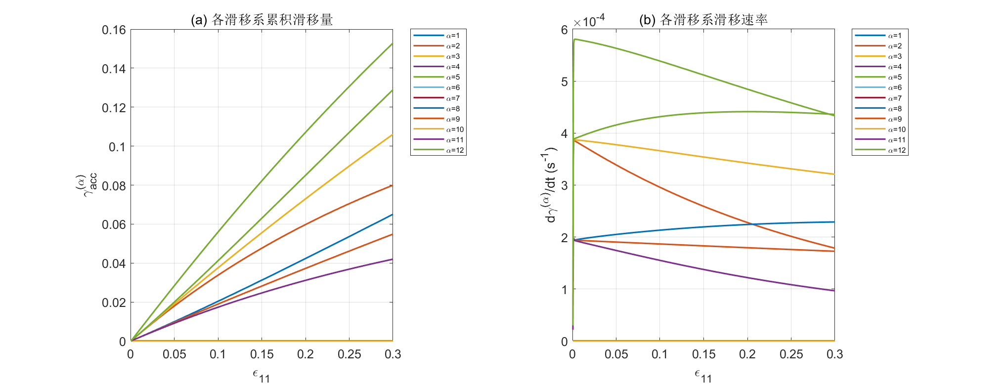 本文工作为晶体塑性本构模型的学习、验证和参数标定提供了一套完整的单点积分计算框架,可作为进一步开展多晶体有限元模拟的基础。