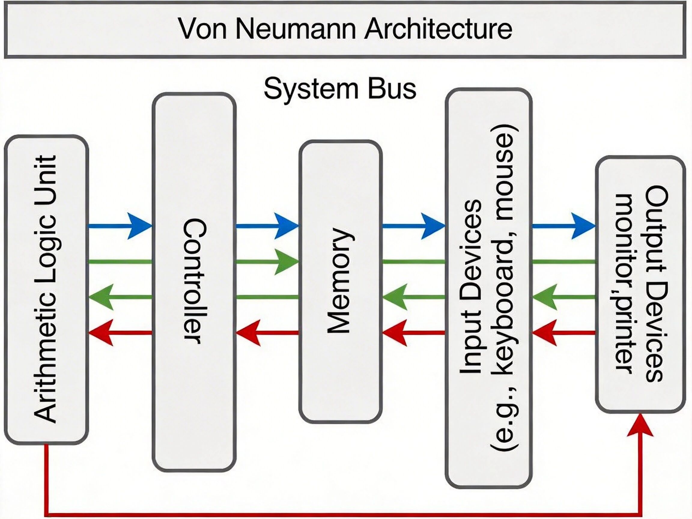冯・诺依曼结构五大部件关系示意图