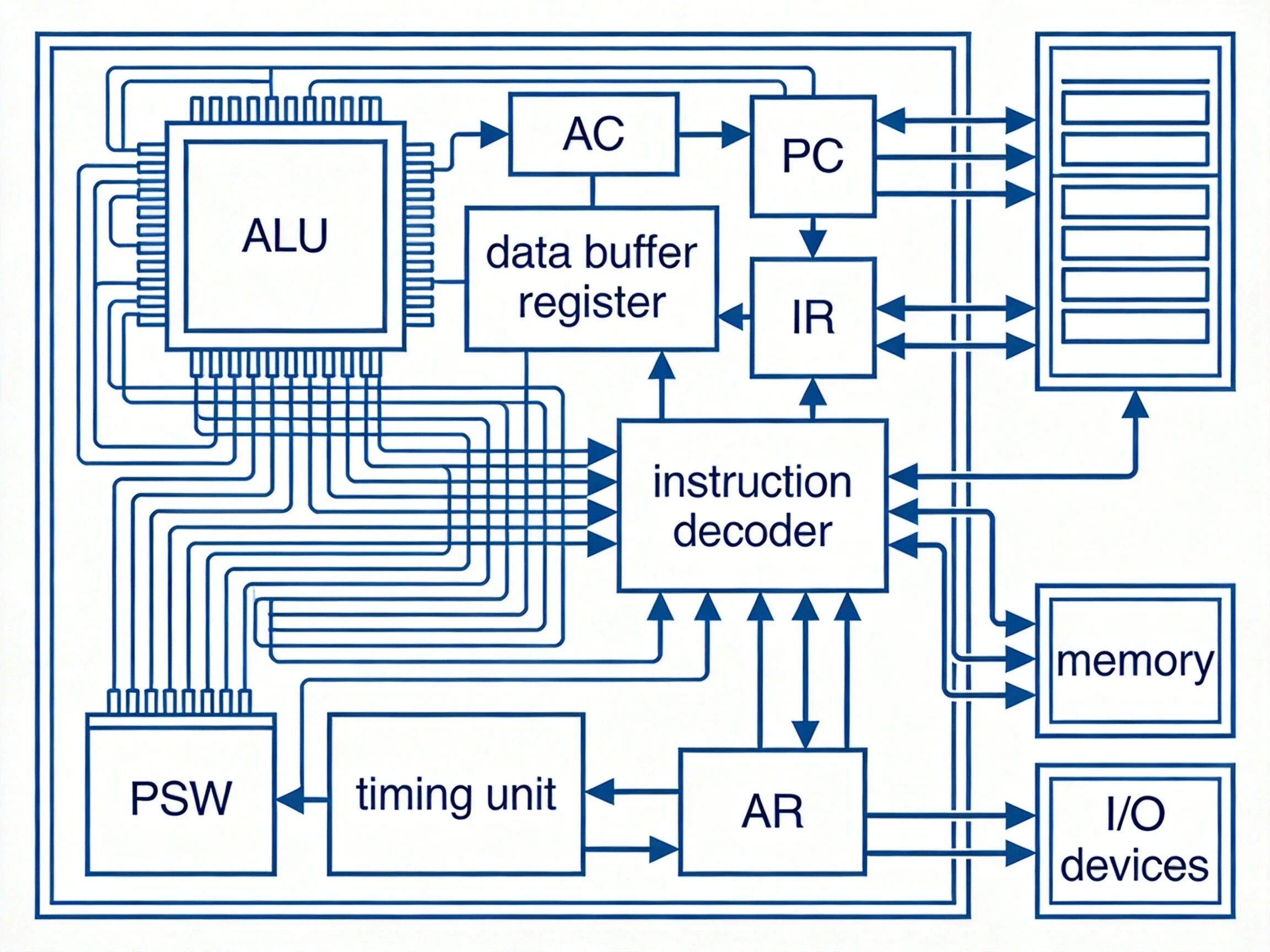 地址寄存器(AR):暂存要访问的存储器或 I/O 设备的地址,直到读写操作完成